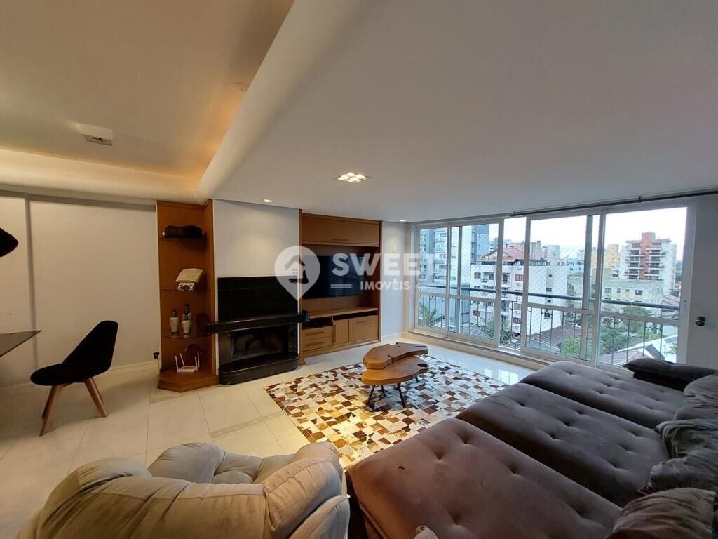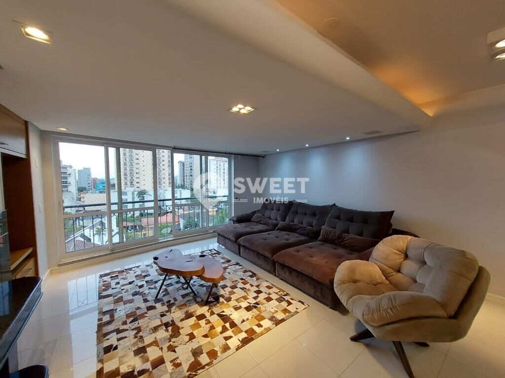 Contando com 2 suítes com banheira de hidro, sala de 2 ambientes integrados a sacada, mais 1 dormitório transformado em home office, lareira, hall de entrada, lavabo, cozinha, área de serviço e 4 vagas de garagem, com 143 m² privativos, semi mobiliado
