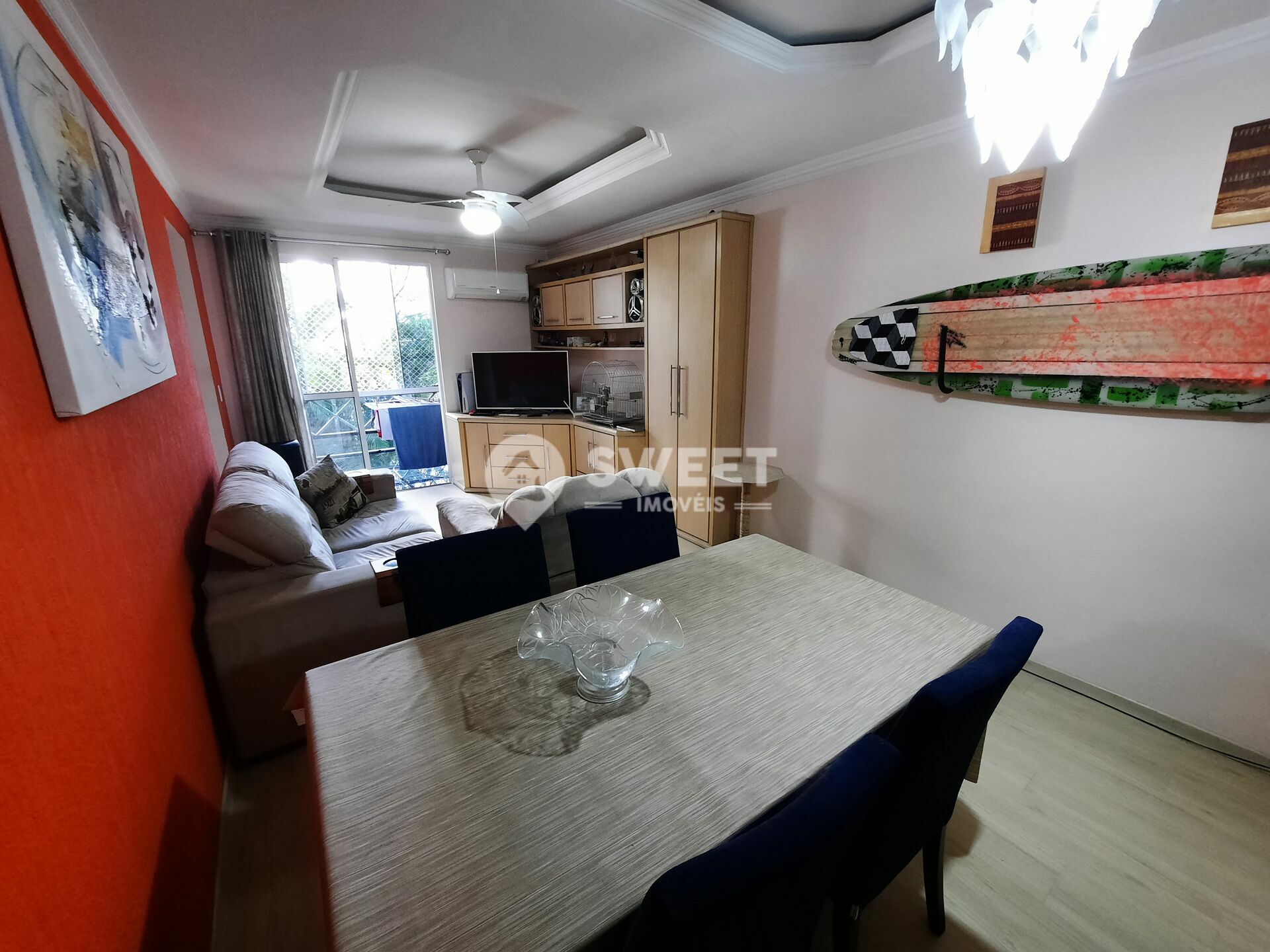 2 Dormitórios, sendo 1 suíte2 Banheiros1 VagaGaragem Coberta1 Sala de TV1 Cozinha1 Sala de jantar1 Sala de estar1 Área de serviço