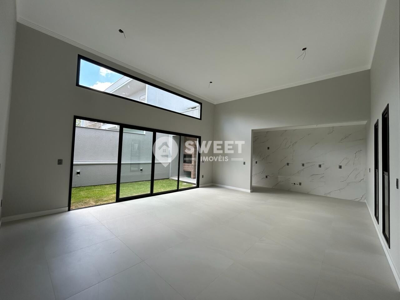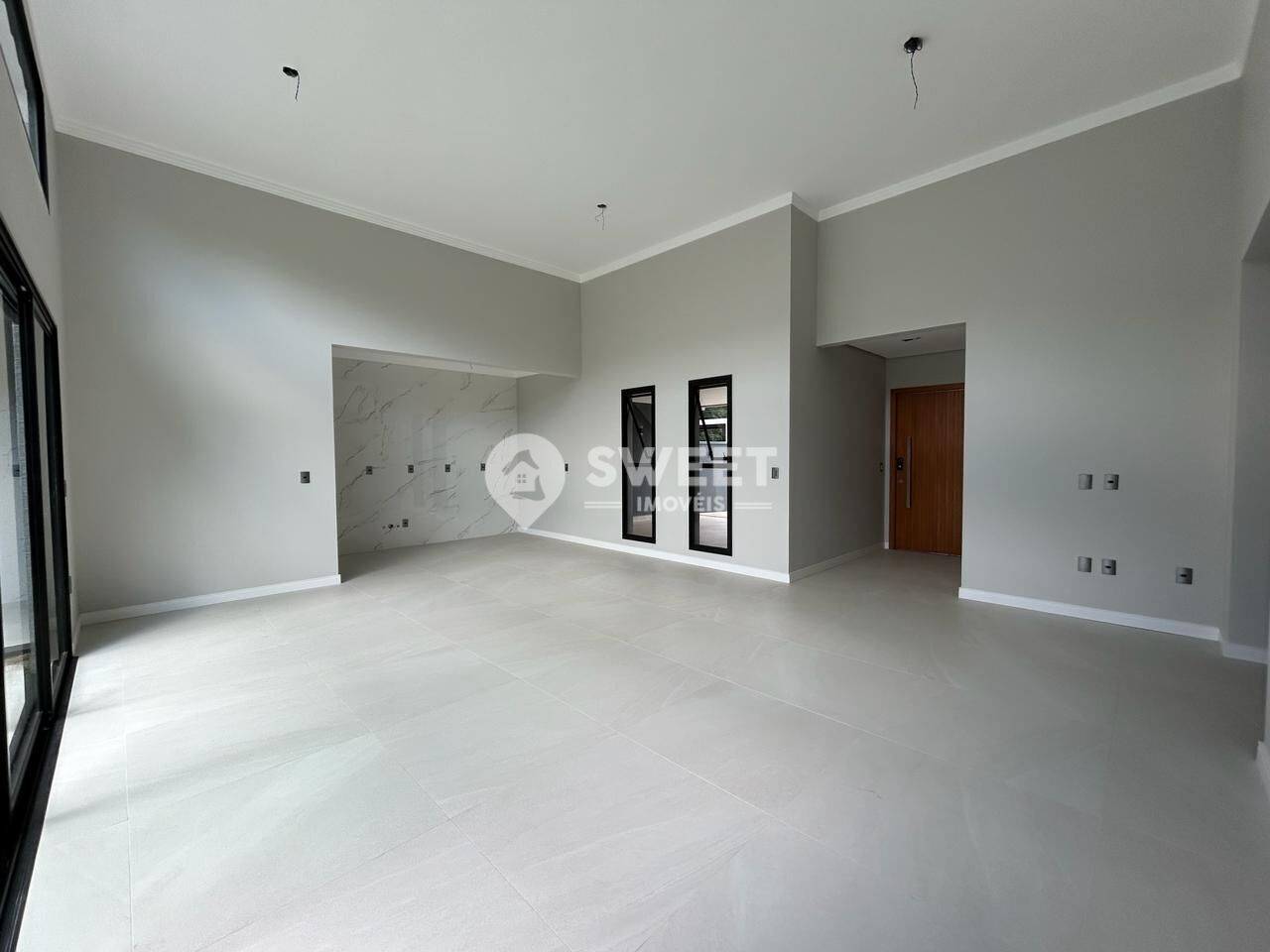 - Sala de jantar e sala de estar integradas com pé direito duplo.
