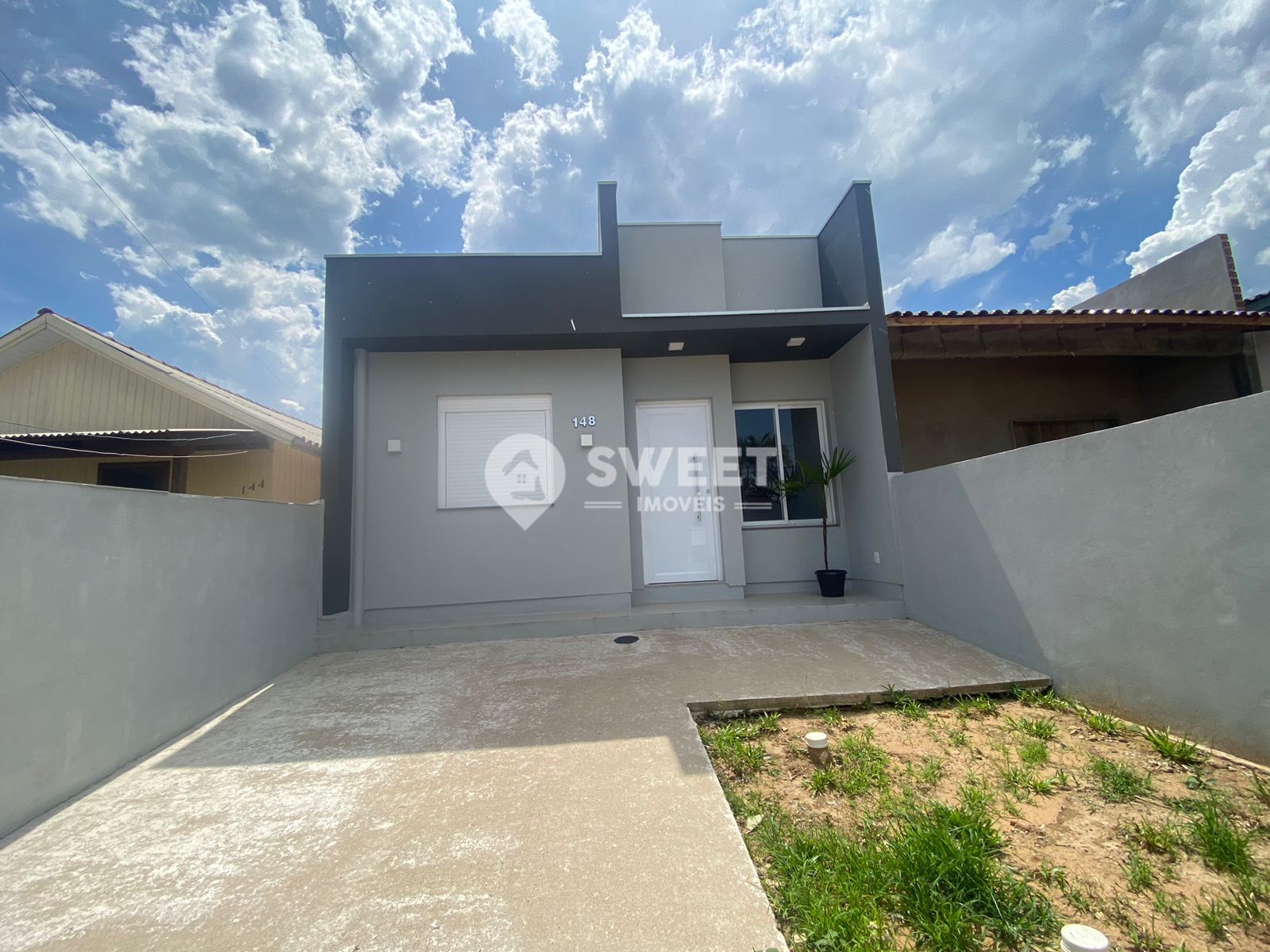 Casa novinha, com pé-direito alto que amplia sonhos, porcelanato que reflete cada conquista e esquadrias em alumínio que trazem luz e leveza pra rotina.