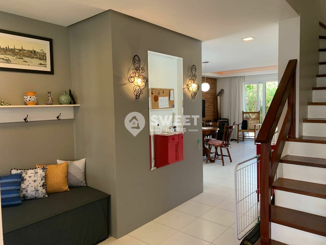 Conta ainda com amplo hall de entrada, lareira, banheiro social, lavabo, área de serviço, sótão, varanda nos fundos com churrasqueira.
