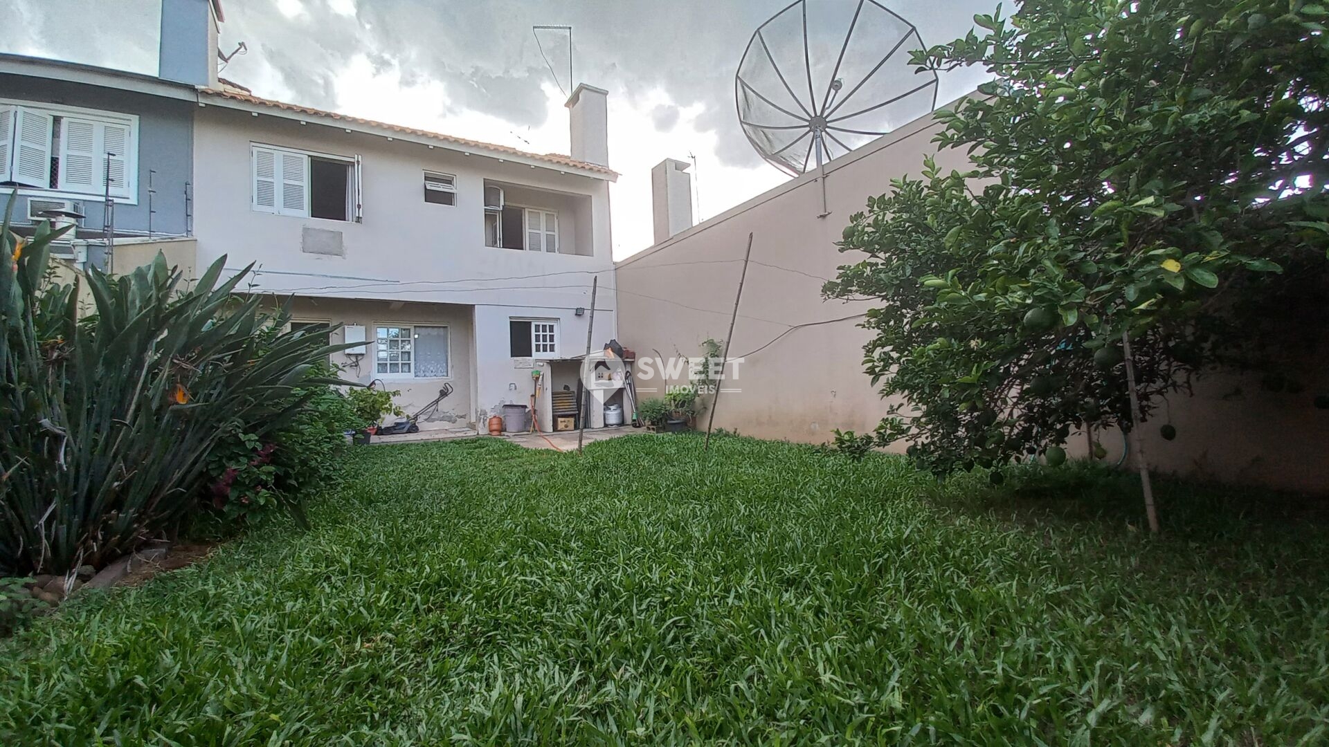 Casa possui água quente, pátio nos fundos e na frente.