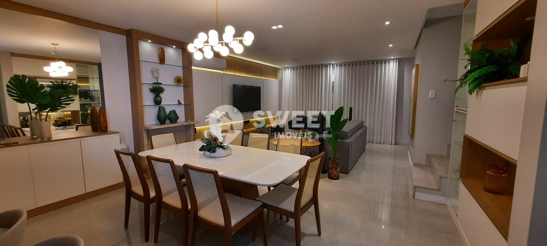 Segundo pavimento: Hall, lavabo, sala de estar com sacada, sala de jantar, área de serviço, cozinha em conceito aberto com churrasqueira; acesso ao pátio;